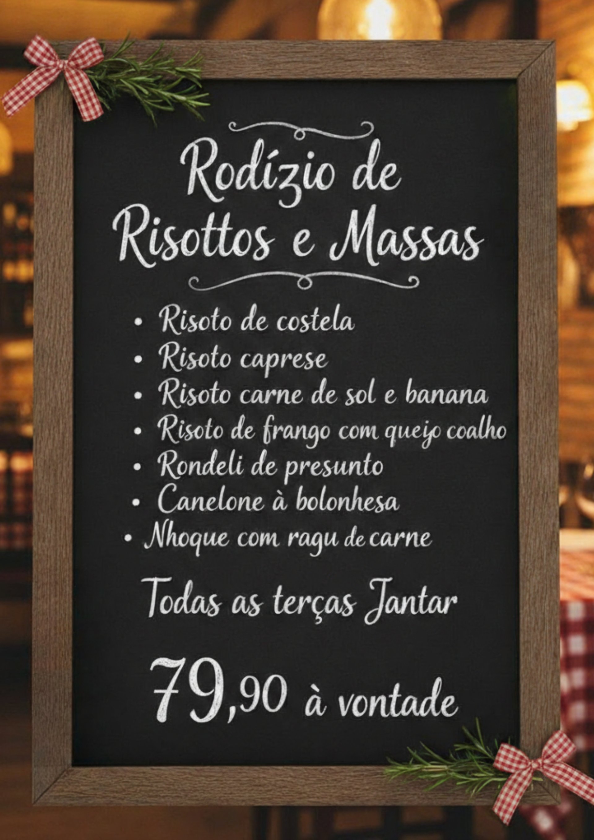 Aqui, em um ambiente acolhedor e familiar, oferecemos pratos autênticos e receitas que celebram a verdadeira essência da Itália, preparados com carinho para proporcionar experiências gastronômicas inesquecíveis. Sinta-se em casa!